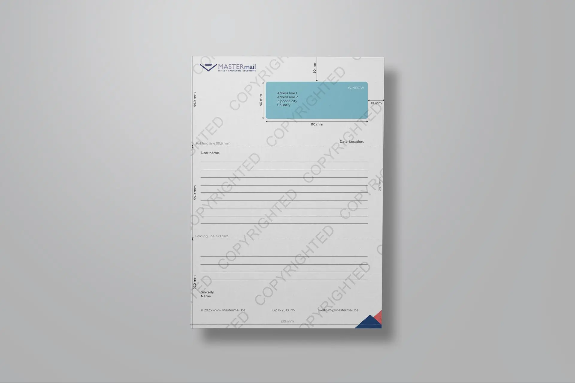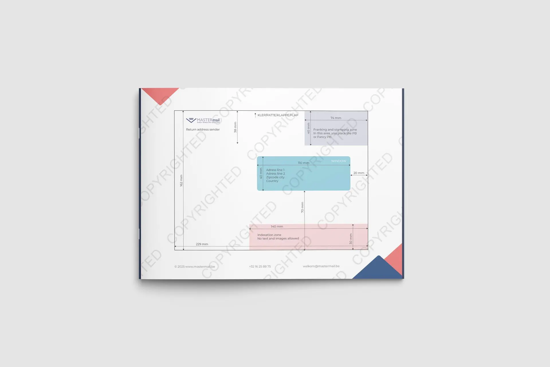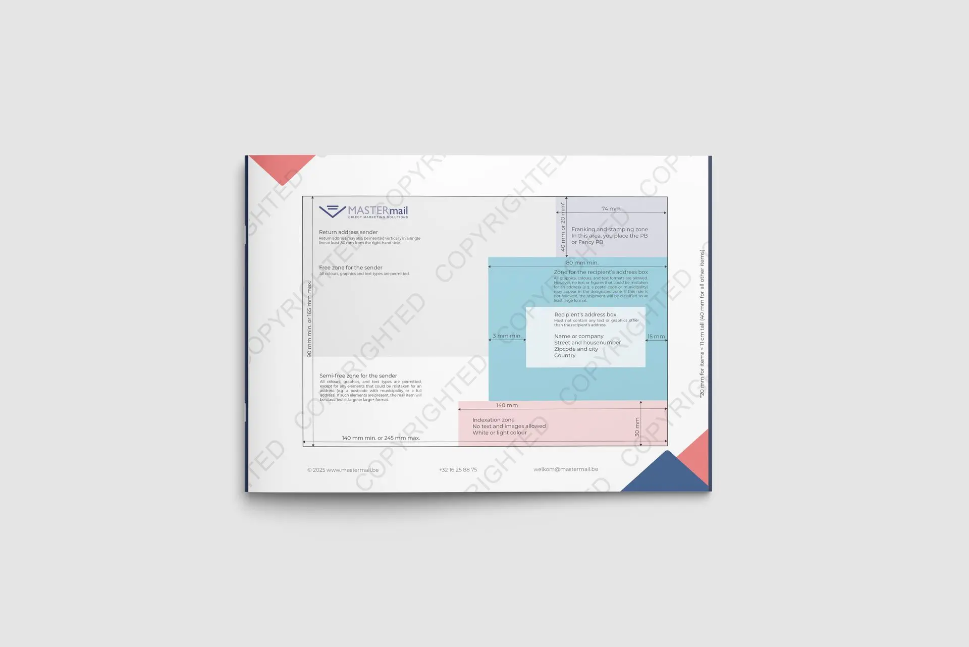 Een kleine fout in de lay-out of opmaak van je drukwerk kan grote gevolgen hebben. Zendingen die niet voldoen aan de richtlijnen van de post kunnen vertraagd worden, extra kosten veroorzaken of zelf niet verzonden worden. Dit wil je natuurlijk ten alle tijde vermijden. Daarom maakte Mastermail 3 templates die je guidelines geven.